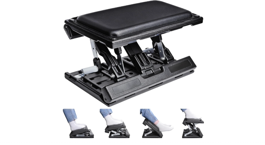 The HUANUO Adjustable Footrest helps support proper sitting posture by keeping feet comfortably elevated when needed. It’s particularly useful for shorter users or anyone whose feet don’t rest flat on the floor while seated. The adjustable height and tilt allow it to adapt to different chairs and desk setups.