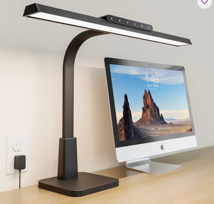 The BenQ ScreenBar is a monitor-mounted desk lamp designed to provide even, glare-free lighting across the workspace. It automatically adjusts brightness based on ambient light, which can help reduce eye strain during long or late work sessions. Its clip-on design also helps save desk space.
