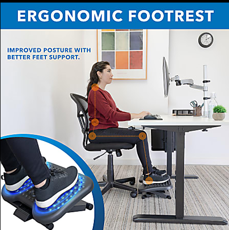 A footrest helps improve posture and supports your legs, especially when sitting or alternating between sitting and standing.